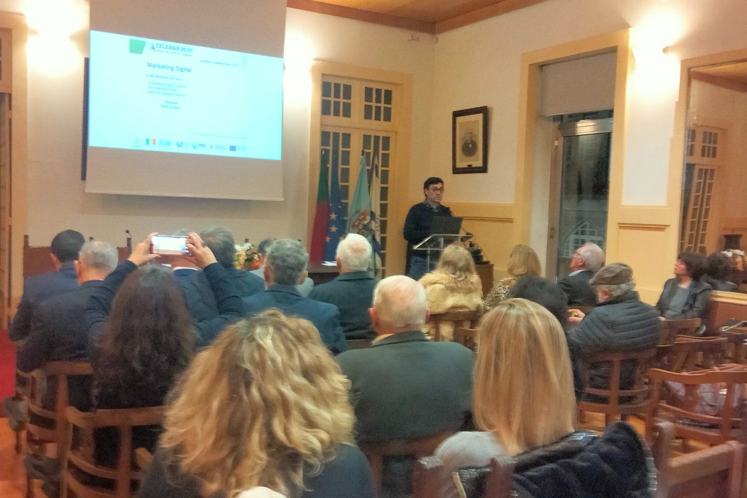 A Aceleradora de Viseu Dão Lafões liderada pela ACDV – Associação Comercial do Distrito de Viseu, acolheu, no dia 8 de novembro, a sessão Acelerar 2030 – Na Vanguarda da Transição Digit@l, com ênfase na transformação digital e na digitalização inclusiva. O evento contou com a presença de cerca de 50 comerciantes e empresários locais e entidades locais e regionais tais como IAPMEI, representantes de Câmaras Municipais da nossa área de intervenção, entre outros, que se reuniram para debater a importância da tecnologia na modernização das empresas e no impulso da economia regional.